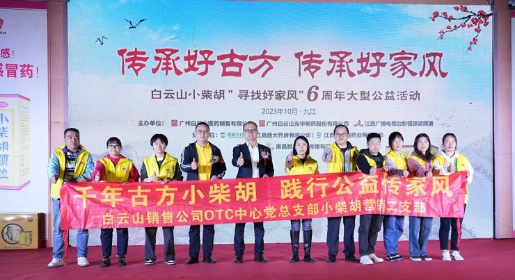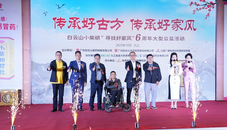2023年10月21日,由广州白云山医药销售有限公司、广州白云山光华制药股份有限公司联合江西广播电视台影视旅游频道主办“传承好古方,传承好家风” 六周年大型公益活动2023年度江西省收官盛典在九江市招商花园城隆重举行。本次活动旨在寻找优良家风,向全社会传播爱的正能量。