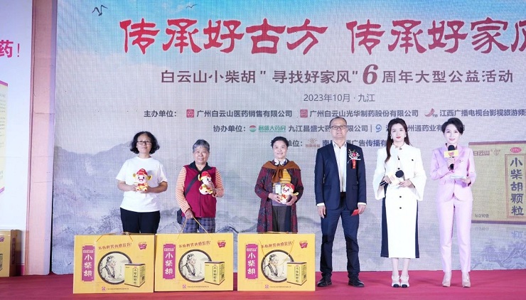 2023年10月21日,由广州白云山医药销售有限公司、广州白云山光华制药股份有限公司联合江西广播电视台影视旅游频道主办“传承好古方,传承好家风” 六周年大型公益活动2023年度江西省收官盛典在九江市招商花园城隆重举行。本次活动旨在寻找优良家风,向全社会传播爱的正能量。